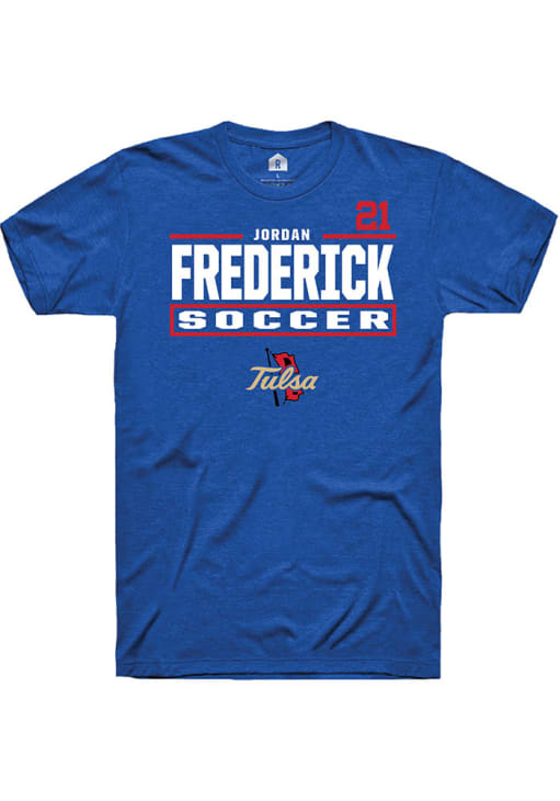 jordan frederick Rally Mens Blue Tulsa Golden Hurricane NIL Stacked Box Player T Shirt