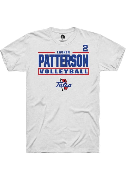 Lauren Patterson Rally Mens White Tulsa Golden Hurricane NIL Stacked Box Player T Shirt