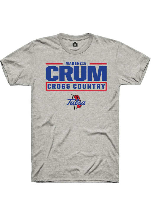 Makenzie Crum Ash Tulsa Golden Hurricane NIL Stacked Box Short Sleeve T Shirt