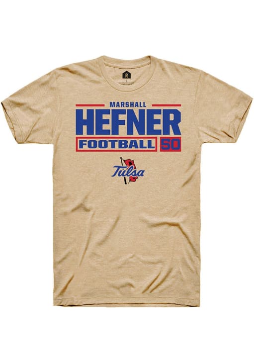 Marshall Hefner Tan Tulsa Golden Hurricane Football NIL Stacked Box Short Sleeve T Shirt