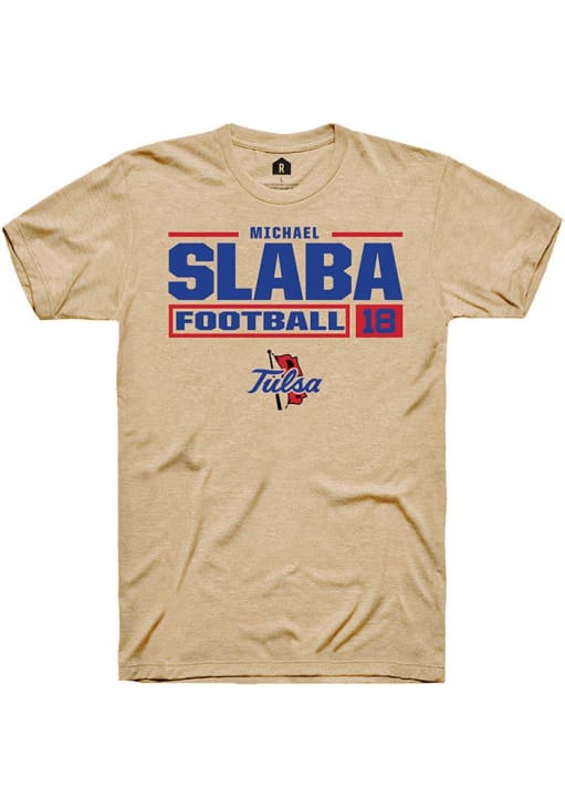Michael Slaba Tan Tulsa Golden Hurricane Football NIL Stacked Box Short Sleeve T Shirt