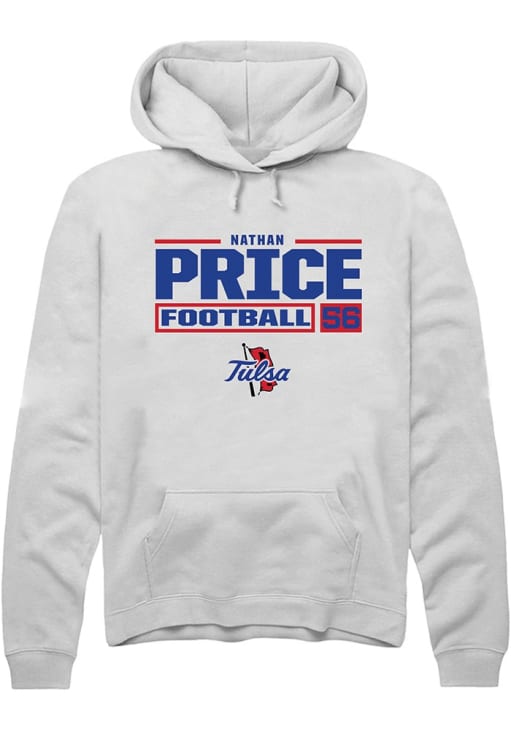 Nathan Price Rally Mens White Tulsa Golden Hurricane Football NIL Stacked Box Hooded Sweatshirt