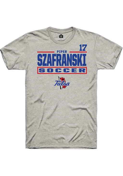 Piper Szafranski Ash Tulsa Golden Hurricane NIL Stacked Box Short Sleeve T Shirt
