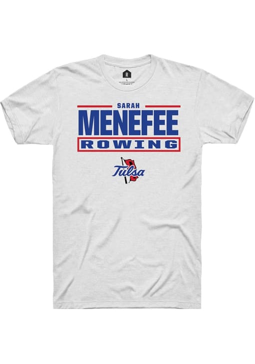 SARAH Menefee White Tulsa Golden Hurricane NIL Stacked Box Short Sleeve T Shirt