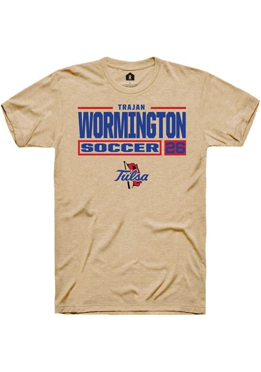 Trajan Wormington Tan Tulsa Golden Hurricane NIL Stacked Box Short Sleeve T Shirt
